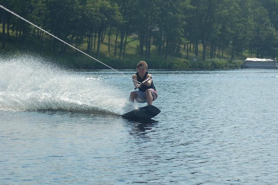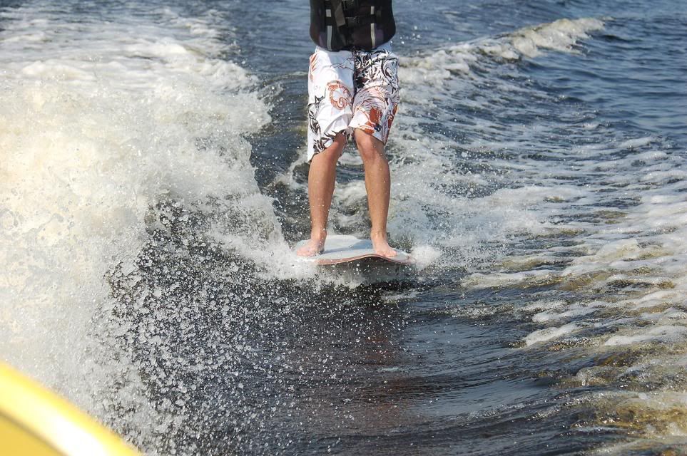 We also tried to wakesurf, but the boat that we were using didn't have a big enough wake/enough push to get us goin without the rope. So we ended up just screwin around on it. It was still pretty fun.