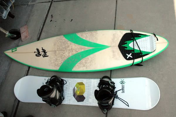 I have a 6'2" Quiet Flight with some pressure dings and a chip on the back the size of my pinky fingernail.. easily fixable. Asking around 215obo. And also my old snowboard.. only used 3 trips.. its a Fusion 151 size 10 boots. $150