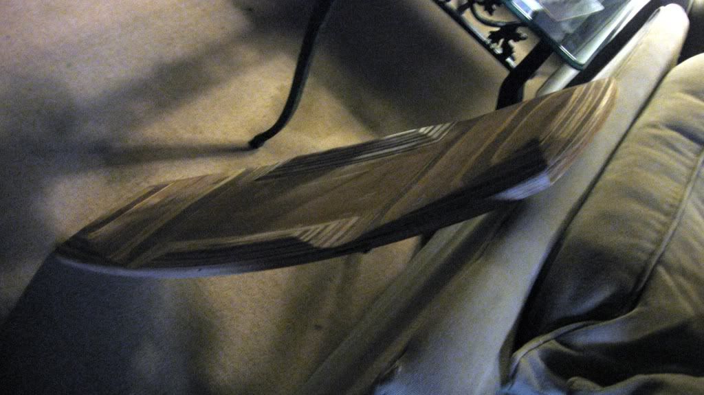 this is my homemade skate i made a few weeks ago, it still needs to be sealed and gripped but im done shaping, im goin to try it this sunday. its all i have until i can get a tnt!