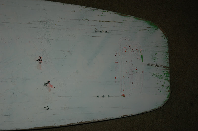 So I finally have to do it. Here is the link to the pics of when i first got the skate. Since I have gotten it I have sanded it down and painted it once in hopes of restoreing the it. I was going to have my girl repaint the original graphic on it and everything but only got to repaint the skate.